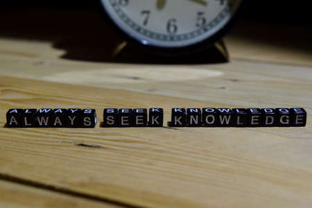 Always seek knowledge written on wooden blocks. Education and business concept on wooden background
