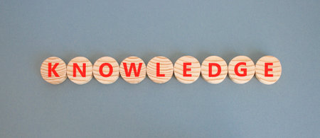 Knowledge symbol. Concept word Knowledge on beautiful wooden circles. Beautiful gray background. Business knowledge concept. Copy space.