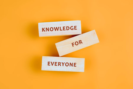 Education Concept text KNOWLEDGE FOR EVERYONE on wooden blocks on a bright background.
