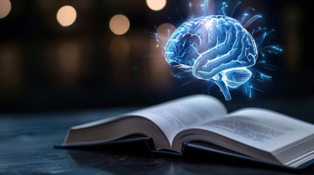 A captivating visual of an open book with a glowing brain hovering above it symbolizes the connection between knowledge and creativity. The image embodies themes of learning and inspiration.