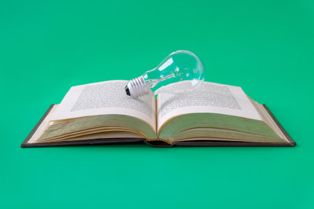 Open book and extinguished bulb over it. Knowledge and education concept