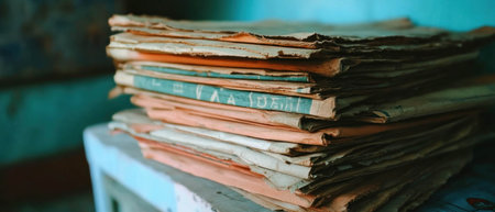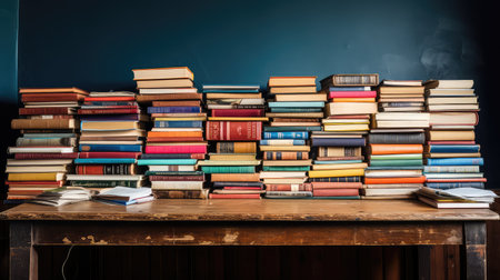 Stack of Old Books on Table