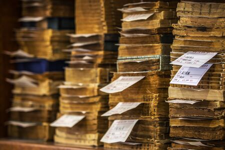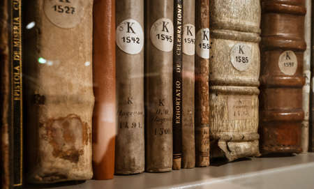 Antique books in the depositories of the Strasbourg library. History, learning, an opportunity to touch the past.