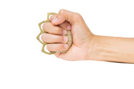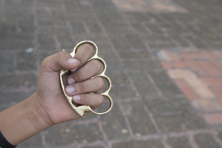 Hand man wearing brass knuckles