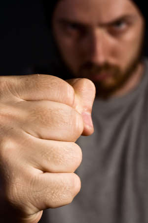 Aggressive man showing his fist. Domestic or gender violence concept.
