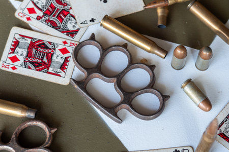 brass knuckles, there are also some bullets and a deck of cards