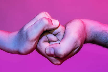 Two fists fighting men hands. Selective focus. Nature.