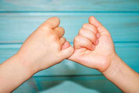 The hands of children who make up their minds after a quarrel with little fingers.