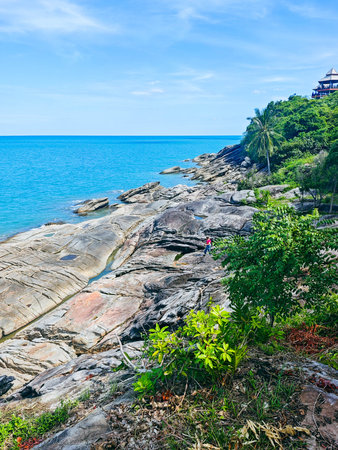 Summer seascape on tropical island Koh Samui in Thailand. Landscape of south east Asia.