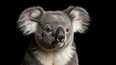 Portrait of a young koala bear on a black background.