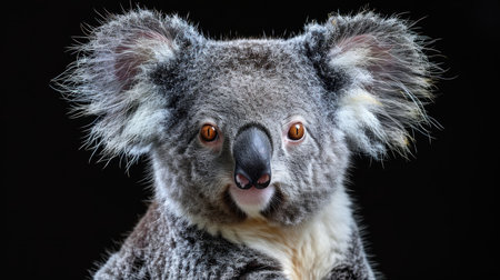 Close up of a koala on a black background. Studio shot.