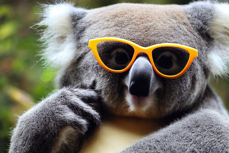 Cool anthropomorphized koala bear wearing sunglasses and holding mobile