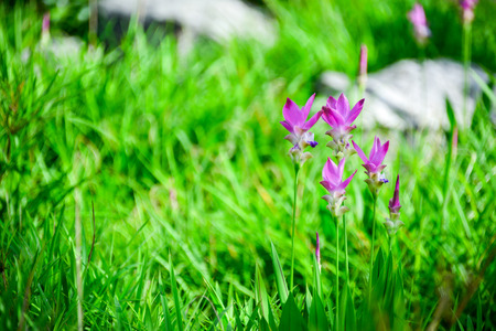 Suthep Siamese flowers or krachiao suthep are blooming from the ground in Doi Suthep-Pui National Park, Thailand.