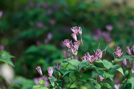 Speciosum lily flowers. Liliaceae perennial plants. Beautiful downward blooming flowers with red spots on the petals from July to September. The root is edible and medicinal.