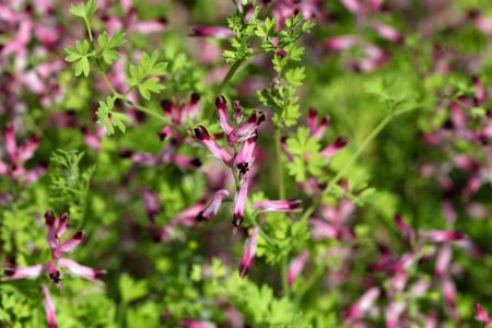 Fumitory, Fumaria, Officinalis is a wild and medicinal plant with pink flowers.