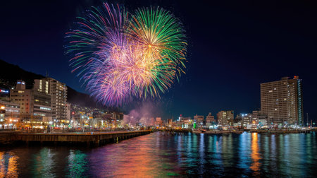 Fireworks over the city of Hakodate, Hokkaido, Japan