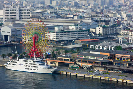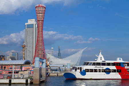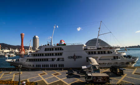 KOBE,JAPAN- NOVEMBER 30,2019:Boat mooring at Port of Kobe in Kobe, Japan. Port of Kobe is one of Japanese maritime port , it is backgrounded by the Hanshin Industrial Region.
