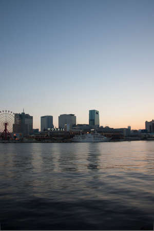 Kobe / Japan - October 8, 2017: Kobe city skyline with Kobe port and Osaka bay in the distance in Kobe Japan