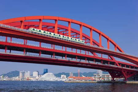 A view from a huge bridge in Osaka's Bay Area early in the morning.