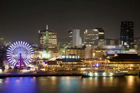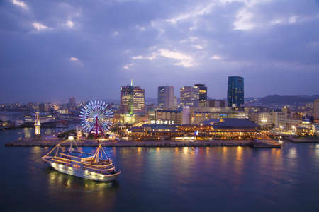 Panoramic of Cityscape and traffic at night in Kobe, Japan.