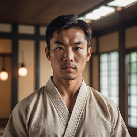 Serious martial arts expert in traditional uniform