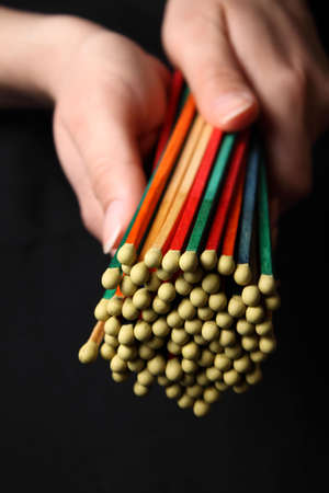 Match, on a black background. Macro shot, perfect for a shelf and for further post-production.