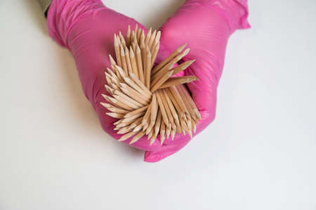 mess of bamboo toothpicks for the dental care and teeth cleaning