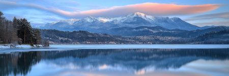 Serene Winter Landscape Snowy Mountains Lake Reflection Peaceful Nature Scenery Stunning View