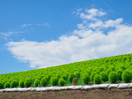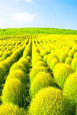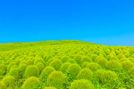 Kochia fields with beautiful sky in Ibaraki,Japan