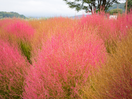 Close up of kochias plant in autumn at Kawaguchiko lake , Yamanashi prefecture , Japan