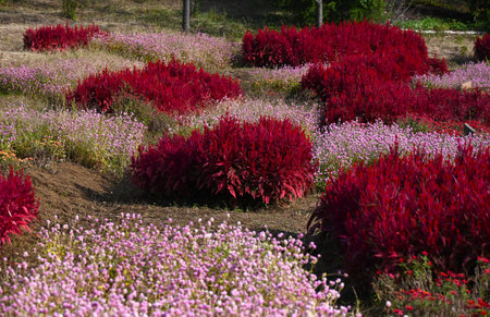 Cockscomb flowers in bloom in autumn at the park, 2023 October