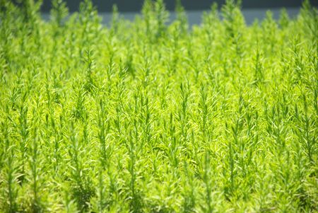 Kochia, bassia scoparia field in center focus