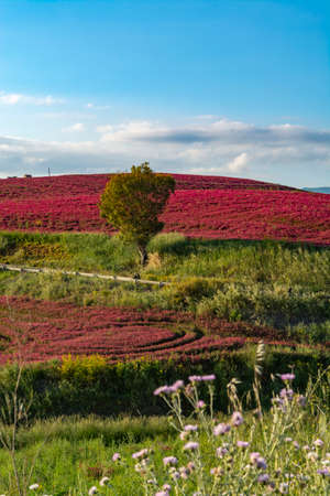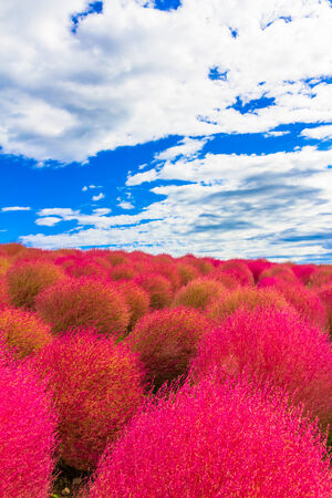 Kochia fields with beautiful sky in Ibaraki,Japan