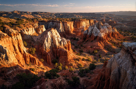 Golden hour vista of sculpted earth formations