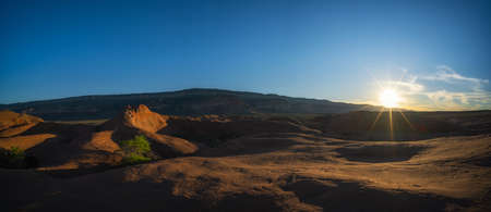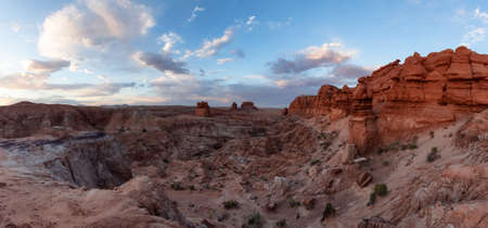 Red Rock Formations in Desert at Sunset. Spring Season. Goblin Valley State Park. Utah, United States. Nature Background Panorama