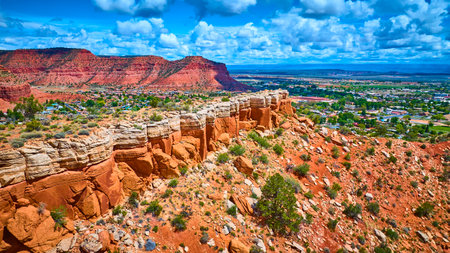 Aerial Red Rock Formations and Kanab Utah Desert Town with Green Valley