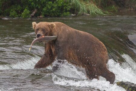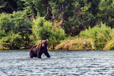Grizzly bear in Alaska Katmai National Park hunts salmons (Ursus arctos horribilis)