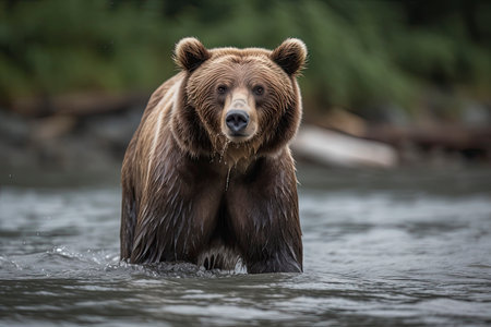 Grizzly Bear of Shores of Alaska.Generative AI