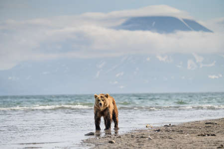 Brown bear on the shore of lake. Kamchatka, Russia