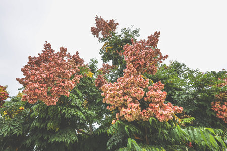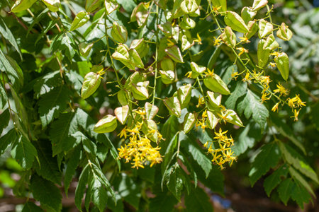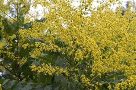 Flamegold rain tree ( Koelreuteria henryi )flowers. Sapindaceae deciduous tropical tree. Small yellow five-petaled flowers appear in panicles from September to October.