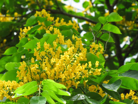 Yellow Padauk flowers blooming in the summer of Thailand.
