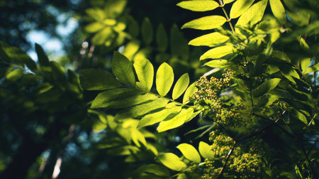 The Black walnut at dawn soft golden sunlight kissing leaves clean air natural color