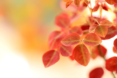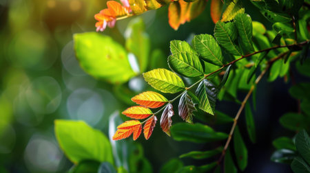This image captures the vibrant transformation of foliage during autumn with colorful leaves against a soft bokeh background, evoking nature's beauty.