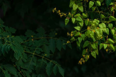 cardiospermum halicacabum with red ripe fruit of plant in field on nature background.