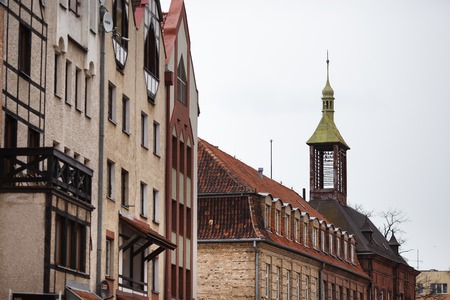 Elblag city, Poland, April 07 2013: View on facade of old town