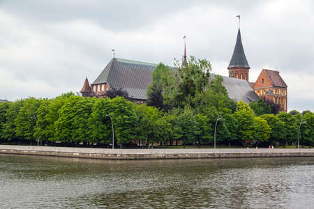 old beautiful Gothic cathedral church on the banks of the pregola river