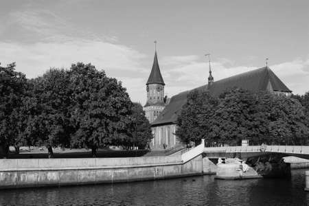 old Prussian cathedral in Kaliningrad, retro black and white toned