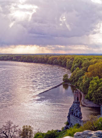 Ruins of the castle Devin located near Bratislava, Slovakia. Fantastic view of the bend of the Danube River from the castle wall
