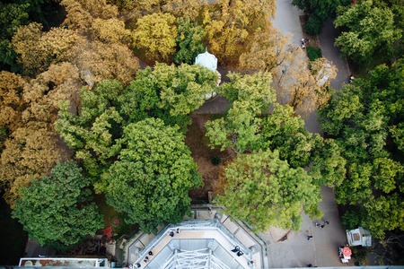 Top view of trees and people at Petrin Tower in Prague