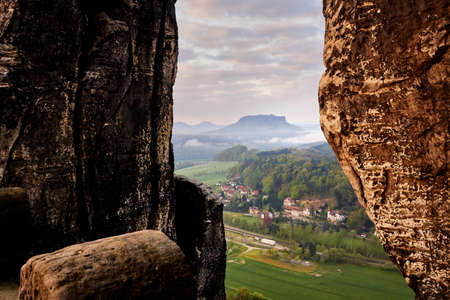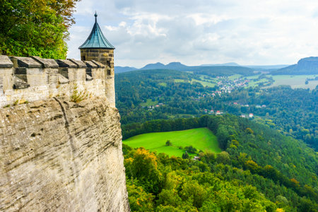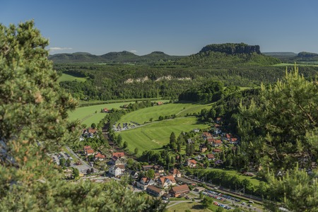 The German village of Hutten. Saxon Switzerland, Germany. View from the fortress Koenigstein. Fortress wall of the fortre